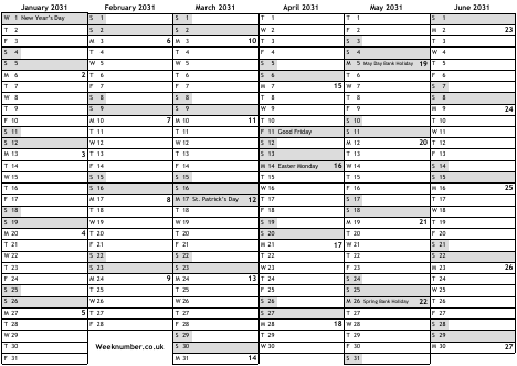 2031 calendar
